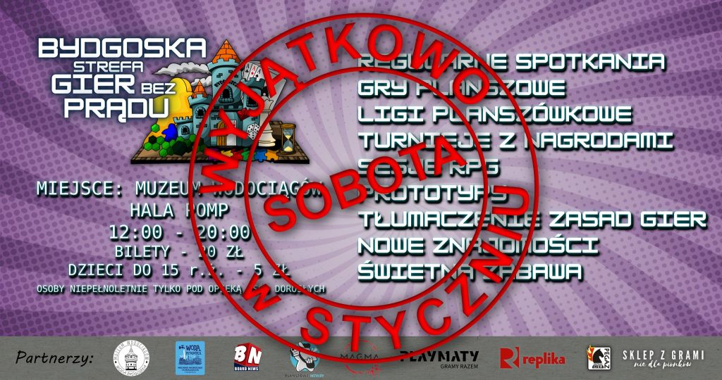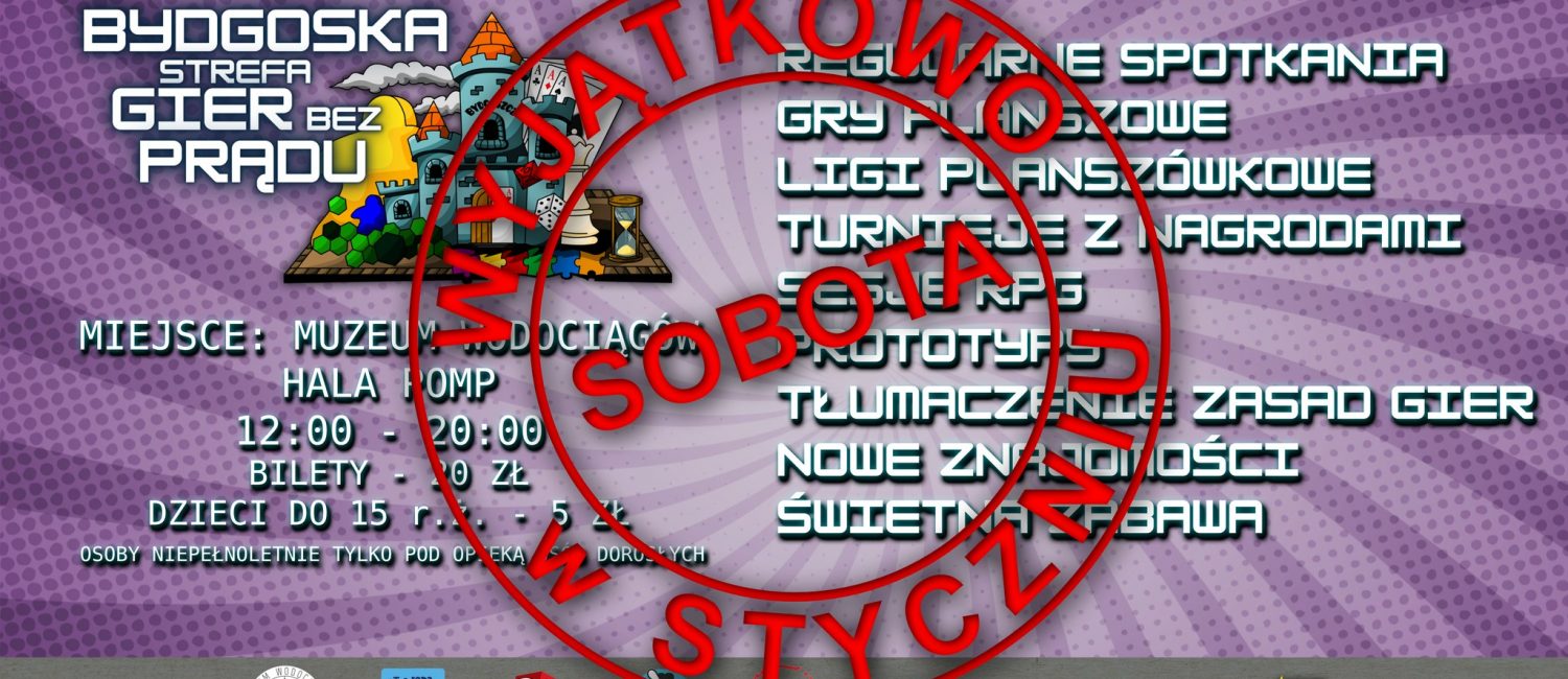 Zapraszamy w najbliższą SOBOTĘ do naszej Hali Pomp przy ul. Gdańskiej 242 na pierwszą w tym roku odsłonę Bydgoskiej Strefy Gier Bez Prądu.