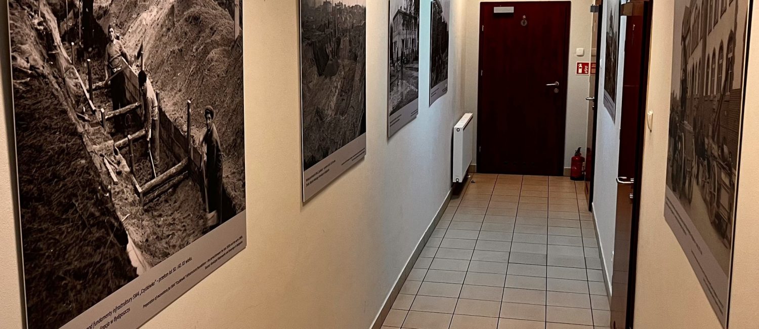 Po drugiej stornie korytarza wiszą natomiast dwie znacznie starsze fotografie. Owe zdjęcia mają blisko 110 lat i ukazują pracowników zajmujących się czyszczeniem bydgoskiego systemu kanalizacyjnego w obrębie dzisiejszego placu Józefa Weyssenhoffa i ulicy Karola Szymanowksiego. Fotografie przedstawiają konne wozy asenizacyjne służące do wywozu nieczystości wraz z ich obsługą.