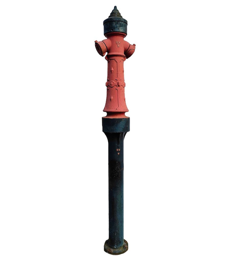 Wytwórca hydrantu pozostawił po sobie ślad na obiekcie w postaci dwóch identycznych inskrypcji – litery „RWW” w dwóch kolumnach. Skrót ten odnosi się do wałbrzyskiej fabryki armatury i odlewni żelaza i żeliwa Rudolpha Warmbta – Armaturenfabrik, Eisen- und Metallgieβerei. Firma ta została założona w 1830 r. Oprócz hydrantów nadziemnych i podziemnych posiadała w ofercie m.in. rury stalowe i żeliwne, ręczne opryskiwacze rolnicze, gaśnice, węże, złączki, zawory, zasuwy, kotły parowe, armaturę do kopalń i cukrowni.