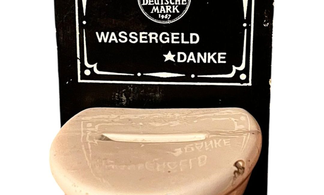 Napisy informują, że za korzystanie z wody należy uiszczać opłatę wysokości jednej marki. Niestety nie wiadomo, gdzie owa skarbonka pierwotnie funkcjonowała. Mógł być to na przykład szalet miejski, łaźnia, lub punkt poboru wody, gdzie można było się np. umyć lub pobrać wodę.