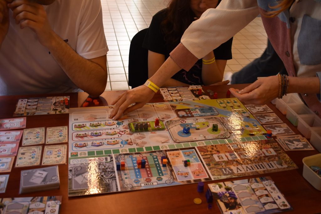 Tego dnia na stołach pojawiły się również trzy premierowe tytuły – Akwileja – miasto kupców, Władcy gwiazd oraz Piksele – każdy mógł zapoznać się z ich zasadami i spróbować zagrać.